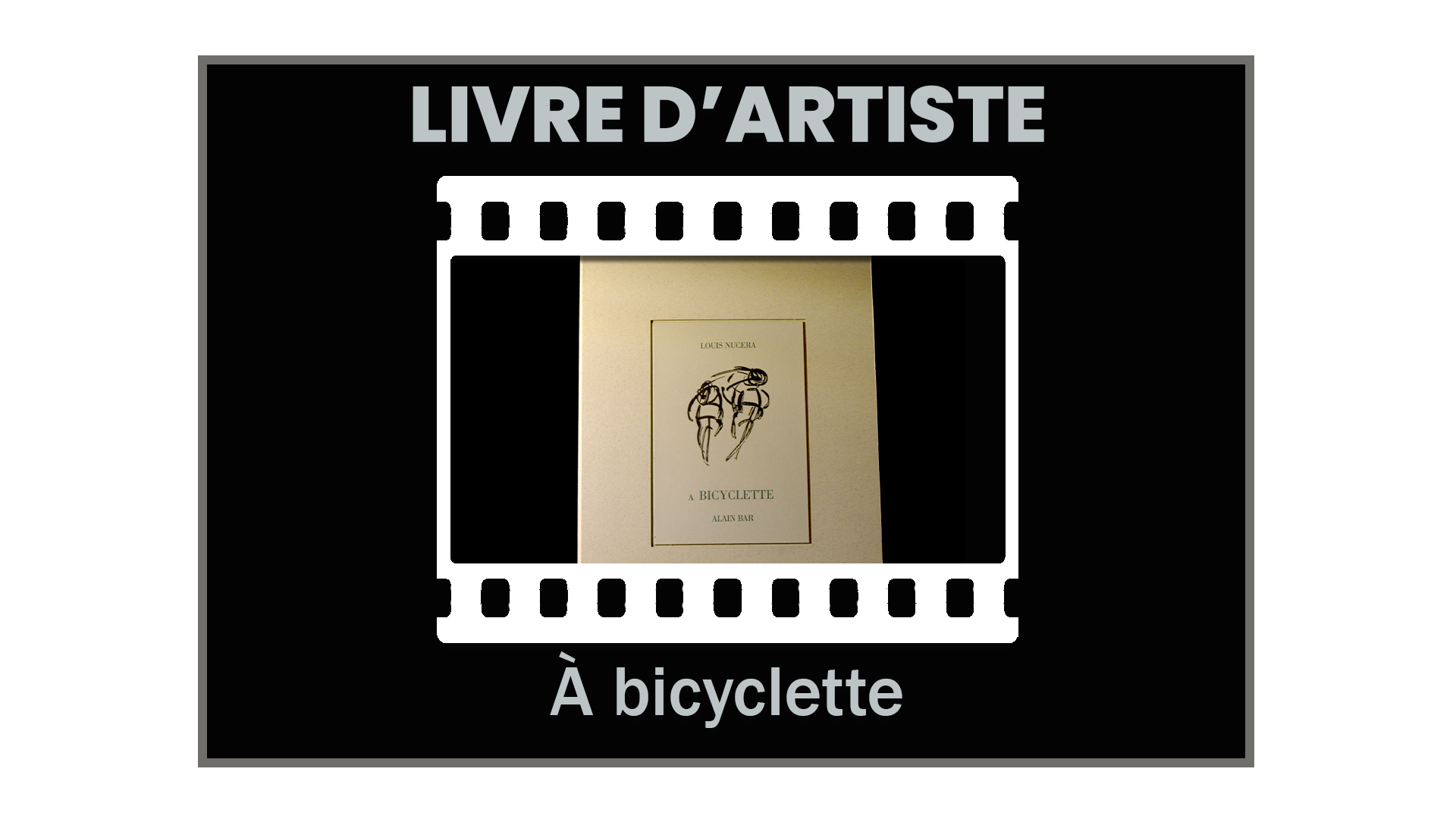 Instant observé, et figé le mouvement prend vie. Les courbes révèlent lutte et force. Le papier se transforme en élément de surface et de décor. La ligne contour devient forme et nous plonge dans un univers sportif fait de défis et de combats. Se surpasser, aller au-delà de ses limites, rendre l’impossible possible. Les créations de Alain Bar ressemblent à des tableaux. Le livre A bicyclette est composé de cinq gravures. La préface de Max Urbini, joueur de football et journaliste, rend hommage à Louis Nucéra, écrivain et passionné du cyclisme.