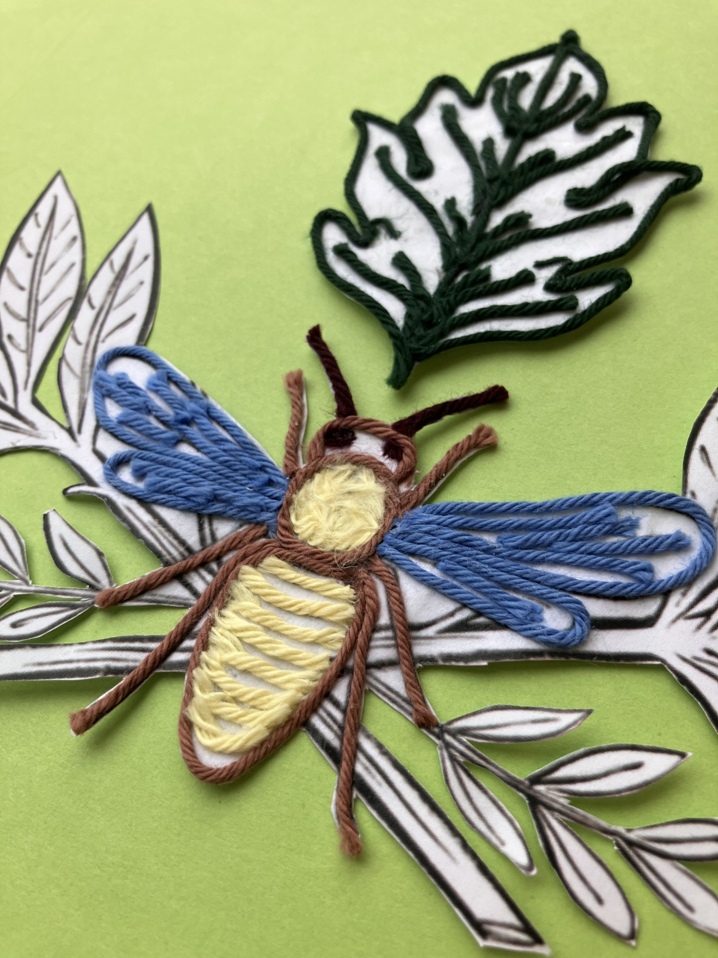 Sur l'un de tes dessins ou sur un modèle, viens réaliser une création colorée, unique et toute douce grâce à des bouts de ficelles. Animaux, insectes, feuilles et fleurs se pareront de couleurs et de reliefs sous tes doigts.