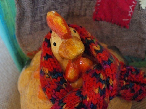 La poule Ninette tend son bec et ses oreilles pour écouter l’histoire de son cousin le p’tit coq et les histoires de terribles bêtes à la gueule grande ouverte !