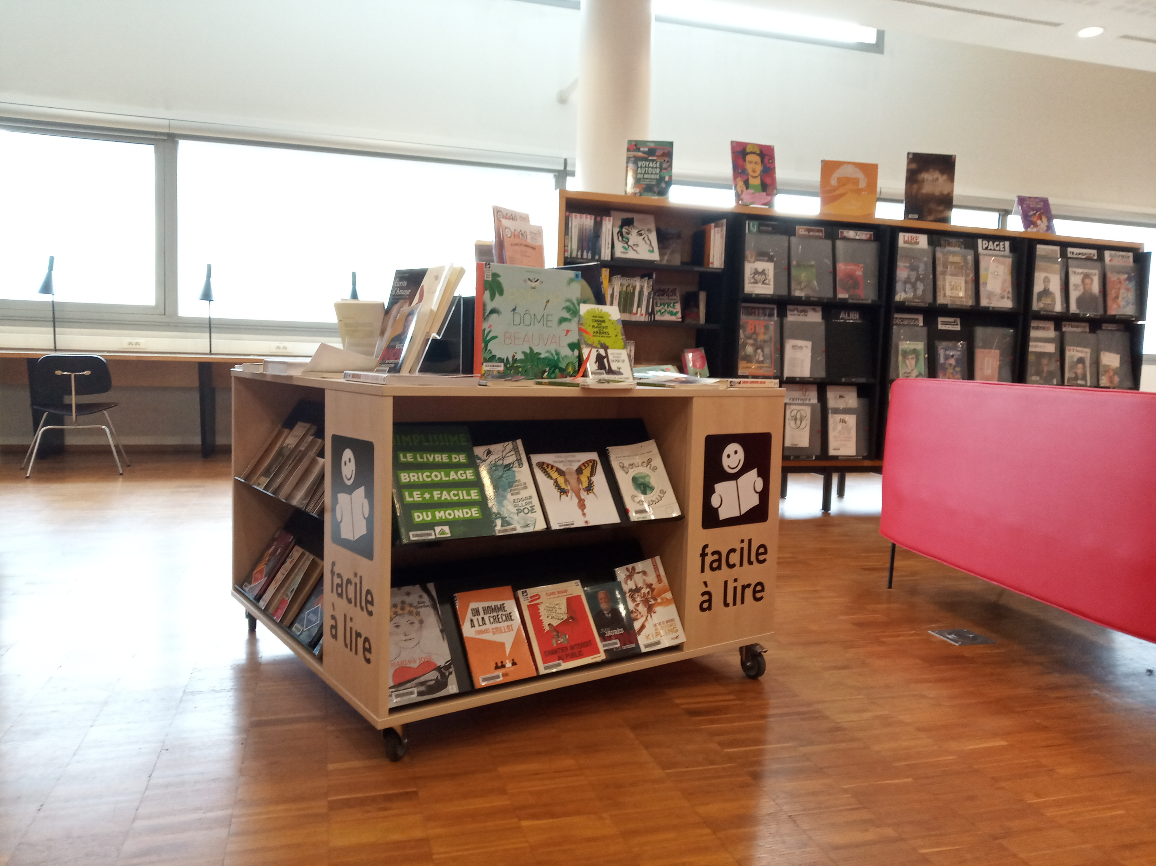 Vous retrouverez ces documents au sein de deux espaces dédiés « Lire autrement » : au Pôle Littératures (pour les adultes) et au Pôle Enfance. Des documents en gros caractères et des livres audios sont également disponibles dans la plupart des bibliothèques du réseau de la Bfm.